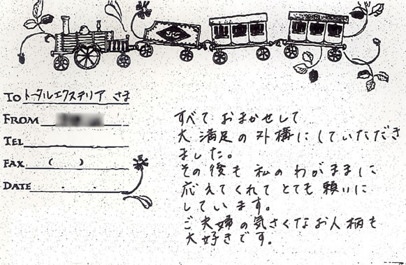 パソコンの事で何を質問しても答えてくださるし、 物置の解体、セメントの施工等、なんでもされる奥様で、たくさんの感動 をいただきました。 |